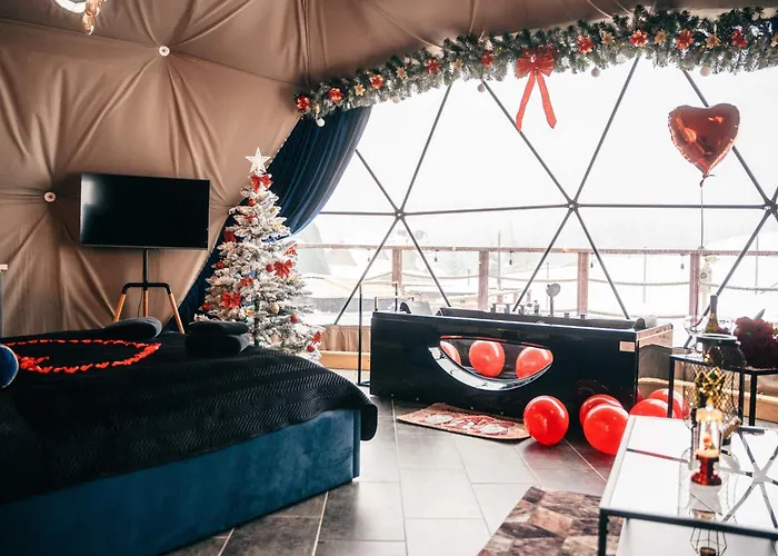 Goralski Harem Osada Glamp Jacuzzi & Balia je umístěna ve městě Zakopane a nabízí rovnou střechu k opalování, sluneční terasu a lázeňskou terapii na místě. Je 10-minutovou jízdou od Termální lázně Bukovina, a Kaplica Najświętszego Serca Jezusa je 15-minutovou jízdou daleko.